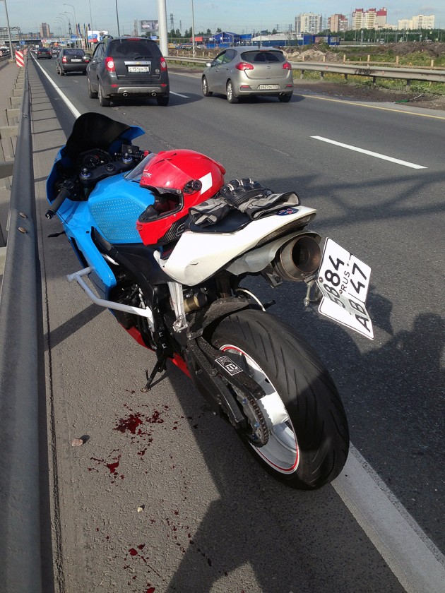 Для тех, кто ведет статистику. Вчера, 04.08.2015, 08:40, съезд с КАД к Мега Дыбенко. Два мотоцикла - HONDA CBR600RR, 5884АВ47, Куликов Сергей Николаевич (RRRider) и HONDA CBR600F4i, Алексей. Встретились в междурядье.