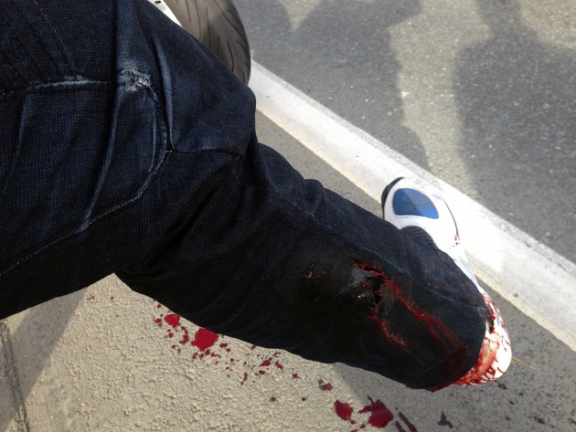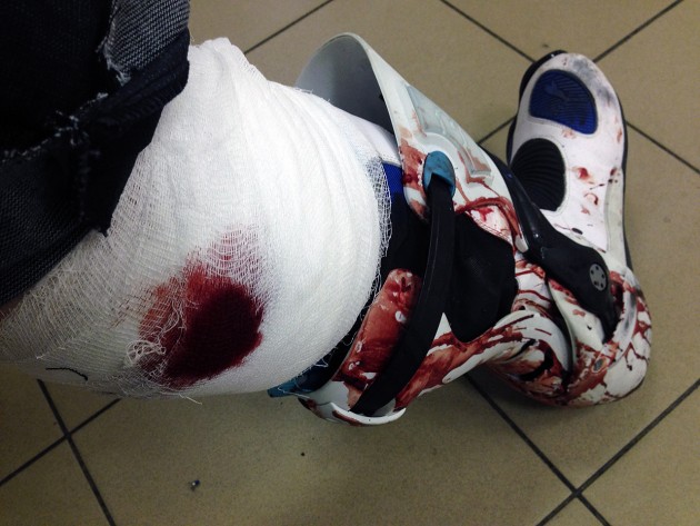 Куликов С.Н. - рваная рана средней трети левой голени, увезен в Александровскую больницу, ул. Солидарности, д. 4. Заштопан. Отпущен домой. Второй пилот не пострадал.