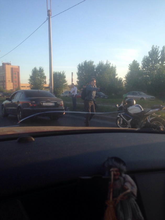 Уронили мотоцикл. Стоят ругаются. Все живы и здоровы даже вроде. Кубинская съезд с путепровода.
