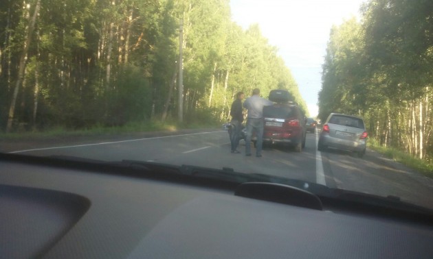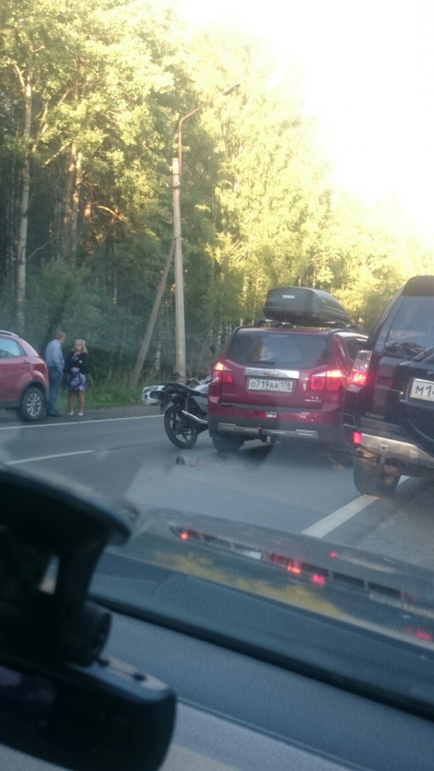 Дтп с МОТО. Петрозаводское шоссе, поселок Саперный. Притерлись слегка. Стоят разговаривают. ДПС нет. Пробка в область огромная(((.
