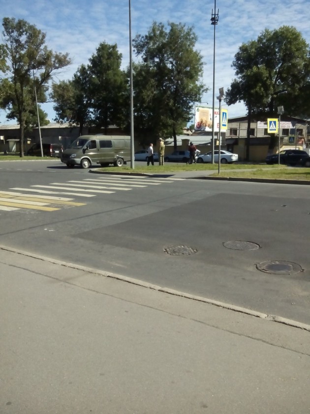 Пересечение Цветочной и Лиговского на повороте в сторону Московского мотоцикл въехал. Только что. Пробки и ДПС пока нет.