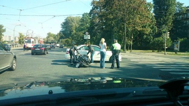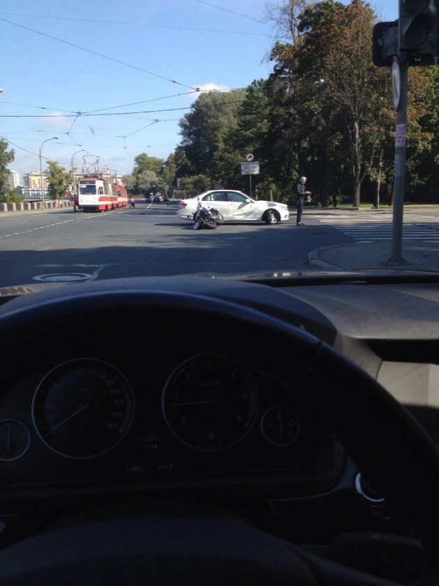Песочная набережная , Мотик протаранил бок мерса, без жертв. гибдд на месте.