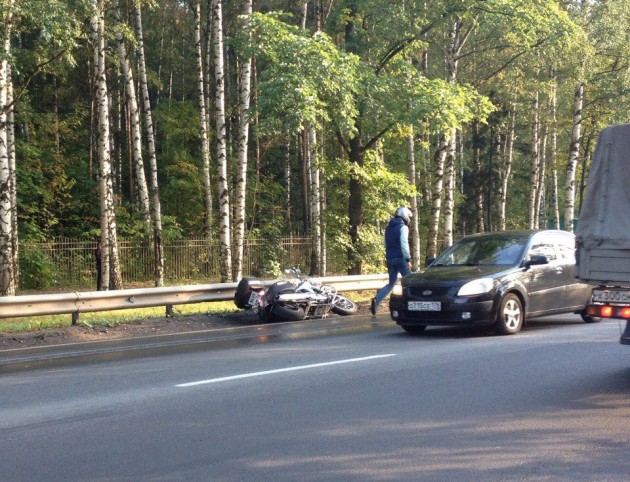 Садовая ул. г. Павловска.Мотоцикл лежит. Проезду не мешает,но пробка есть.