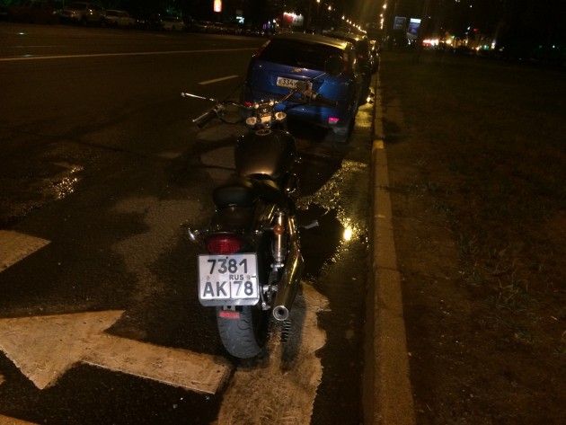 На повороте с Обуховской обороны на шлисельбургский. Подскользнулся на трамвайных путях и упал на левый бок. Заклинило заднее колесо и мотоцикл отволокли с перекрёстка. Но всё как то странно. Байкер цел, но бросил мот на перекрёстке. В угоне вроде нет, но публикую на всякий пожарный. Я бы мотоцикл не бросил .