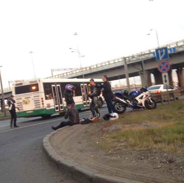 ДТП. С участием мотоцикла. Пулковское шоссе, в сторону Пушкина. Перед заездом в Ленту. Пробка начинает скапливаться. За фото извиняюсь.