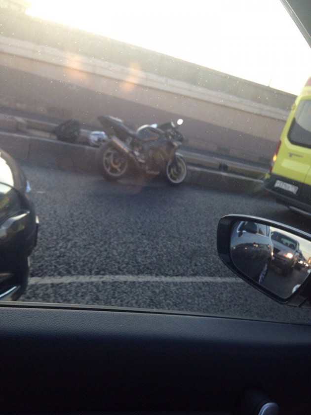 Если валяется красный мот (дукати) 3**9 АН 78 , то он сам навернулся, может ногу придавил себе. Если что есть видео.
