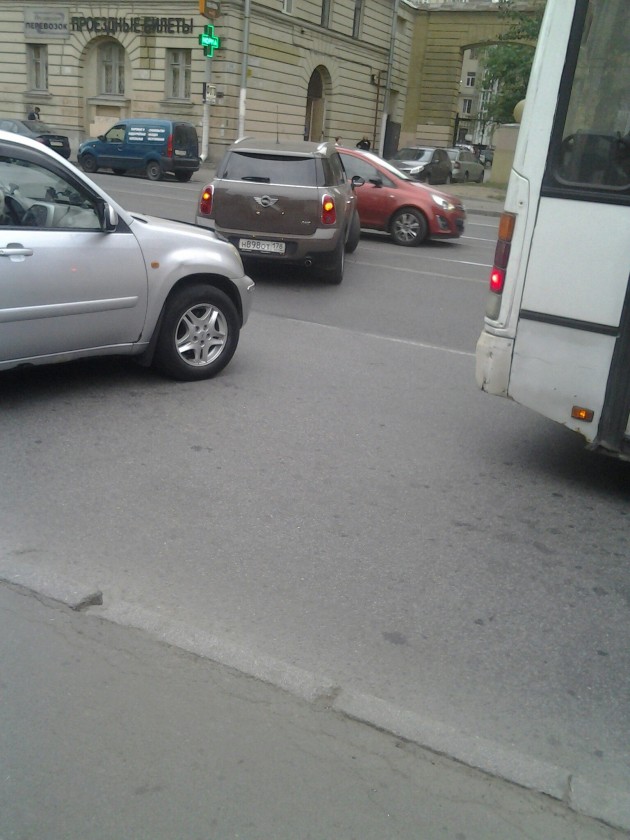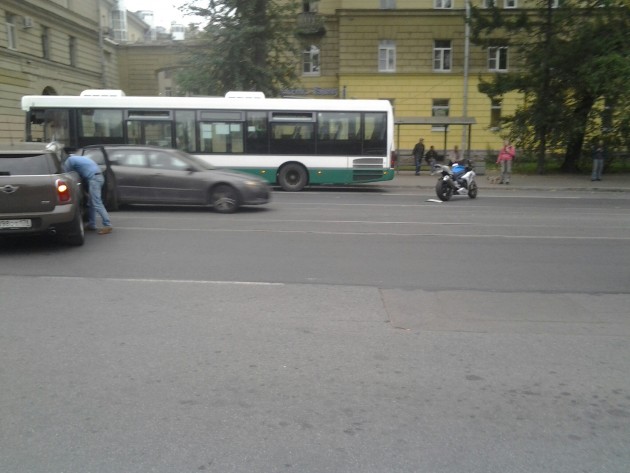 Только что на Боткинской улице, напротив метро пл.Ленина, водитель мини купера выезжая со двора, не заметил мотоциклиста.служб нет пока.Пилот жив, но заметно хромает.