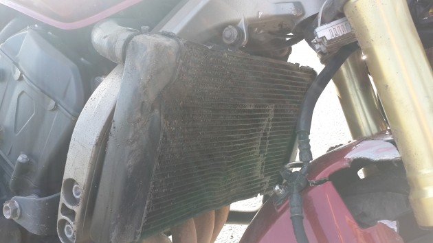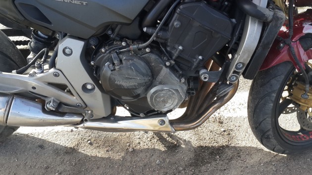 Всем привет! Для статистики развязка на КАДЕ софийка в сторону Колпино. Закладывая в крутой поворот влетел в выбояну в асфальте после чего поймал ''расколбас'' у самого отбойника мот удалось стабилизировать, но задним колесом задел неубранную обочину (песок) , мот лег и понеслось......!!! Сам отделался потертостями , ушибами и испорченой а защитой, а вот мот пострадал серьезно. ЗАКРЫЛ СЕЗОН!!!
