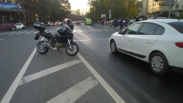 Утром в 8:20 напротив проходной обуховского завода(пр.обух.обороны д 120),сбили мотоциклиста,