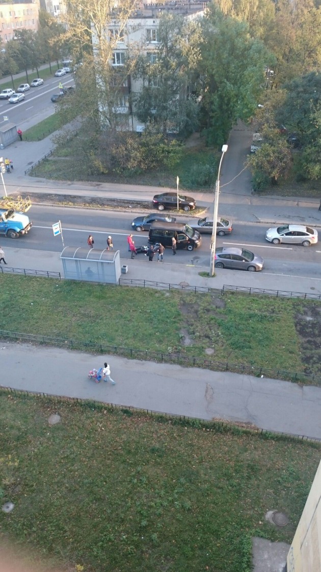 Перекресток Стойкости и Корзуна, 17:38. Байк и минивэн. Все живы, движение затруднено, объезд по встречке.