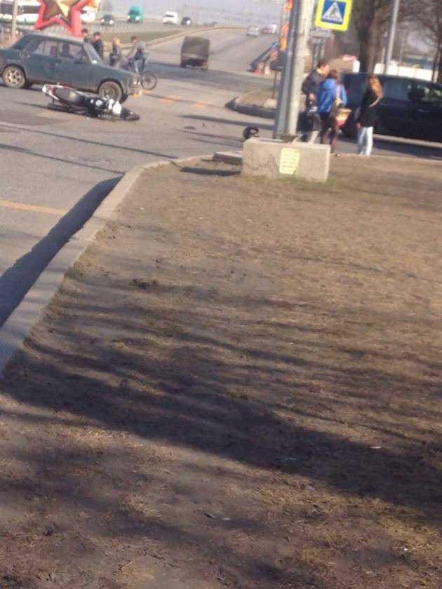 Непокоренных и Меньшековский, мотоциклист въехал в фуру, пострадавших нет, отделались ушибами.Есть затруднение движения, актуально на 16:15