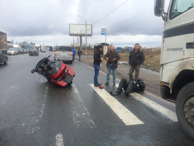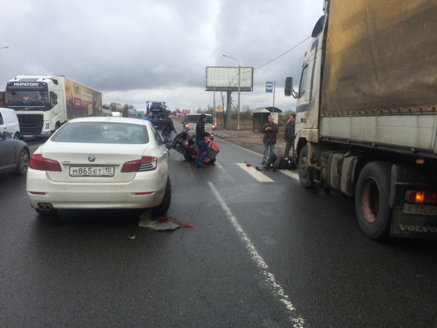 10.30 Ям-Ижора Московское шоссе на ПП в сторону Питера Данила на голде вошел в папу, который остановился пропустить пешехода, и отлетел под попутную фуру. все три участника ДТП из Петрозаводска встретились в Лен области.