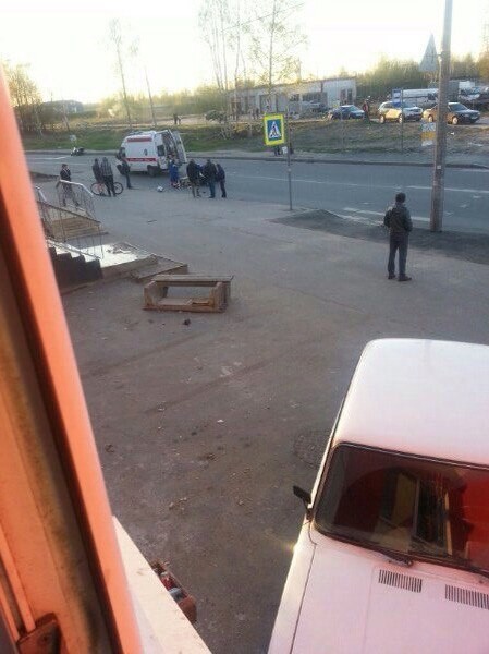 Кржижановского дом 5, лежит мотоцикл и мужчина, мотоциклист стоит рядом, кто кого сбил непонятно, скорой нет.