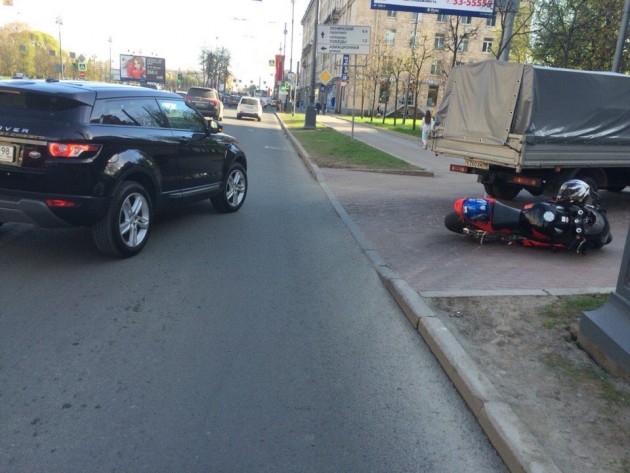 ДТП с участием красного мотоцикла и газели (правый ряд, перед площадью, в сторону Пулково). Около 16.00