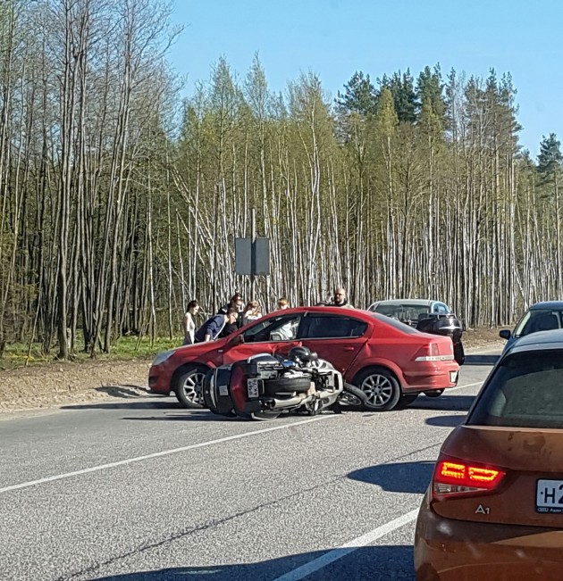 ДТП с участием мотоцикла. ДПС и скорой нет (видимо только что произошло). Жертв не видно. Пробка собирается в обе стороны (свободна 1 полоса для движения).