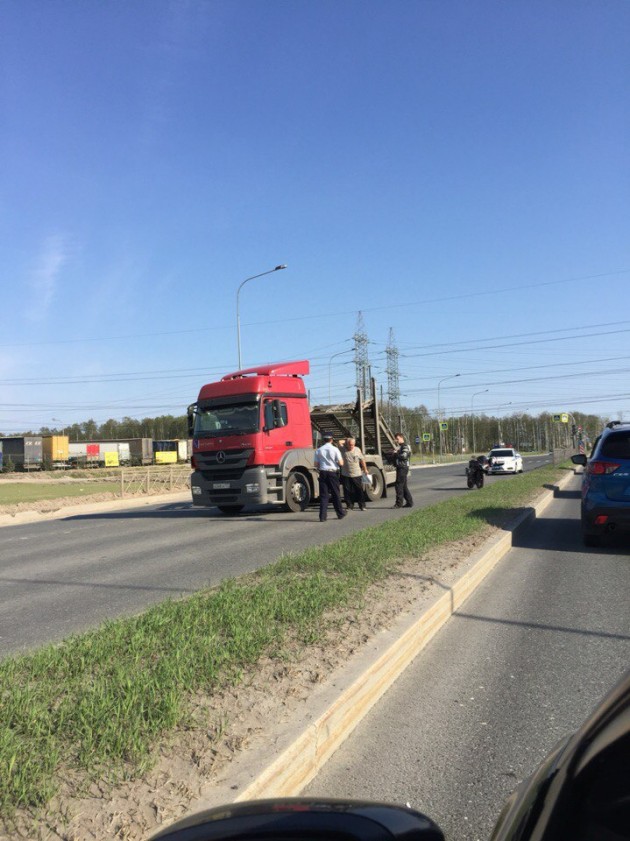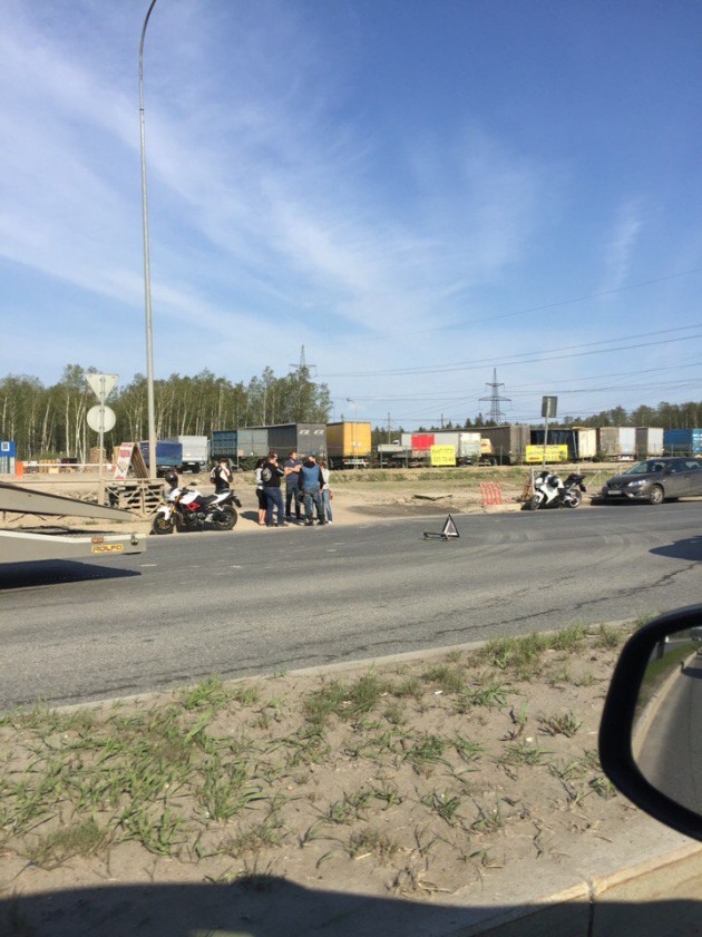 Была там - фура выехала с второстепенной и в повороте заняла все полосы, так что мотоциклист не поместился в крайней левой:)