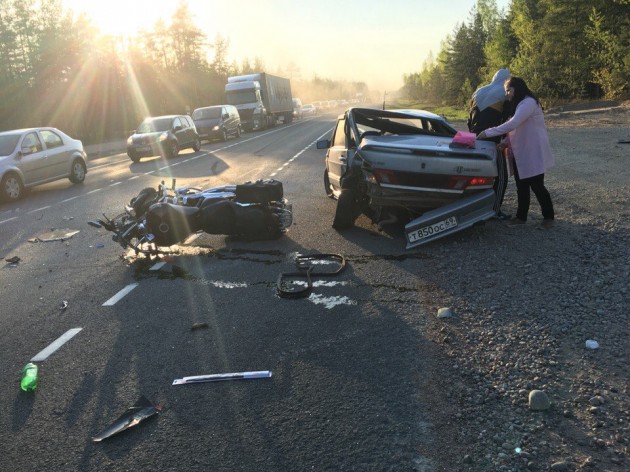 Дтп ваза и мото, только что перед Заходское, пилот жив, в машине тоже.