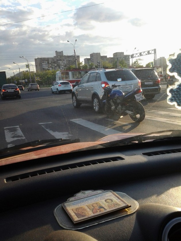 ДТП с мотоциклистом На пересечении Бухарестской и Дунайского. Все живы Из ВК.