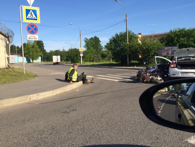 Товарищ мотоциклист отдыхает на Волковском пр. у поворота на Стрельбищенскую ул.