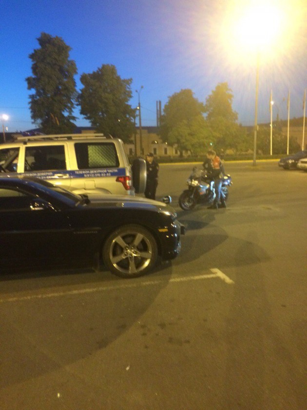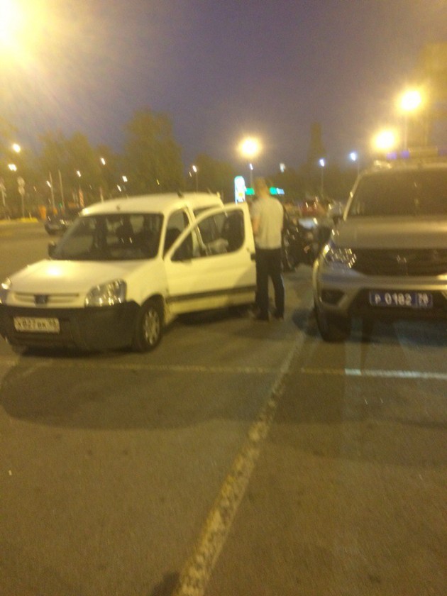Парковка у Ленты, на Обводном, парень на моте въехал в бок авто, на ровном месте, услышала только удар, кто виноват непонятно, на ровном месте, чуть не подрались. ППС мимо проезжали.