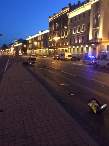 Водитель иномарки проехав на красный свет сбил пилота на максискутере, после чего скрылся. Пилот жив, раны лица и головы, был увезён скорой, более о его состоянии не известно.