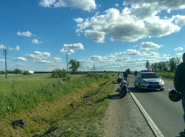 На Ропшинском шоссе (от Марьино в сторону Петергофа) 17:05 авария с мото. Лесовоз (?) встречного направления вытолкнул мото в канаву....пилот -девушка, лежала без сознания, сейчас очнулась, разговаривает. Открытый перелом ноги. Дпс на месте, ждут скорую...