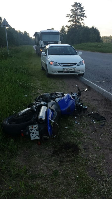 Приозерское шоссе.(место не точное) ДТП с участием мотоцикла. 10-ка не права.Что с мотоциклистом не известно ,вызвали скорую.