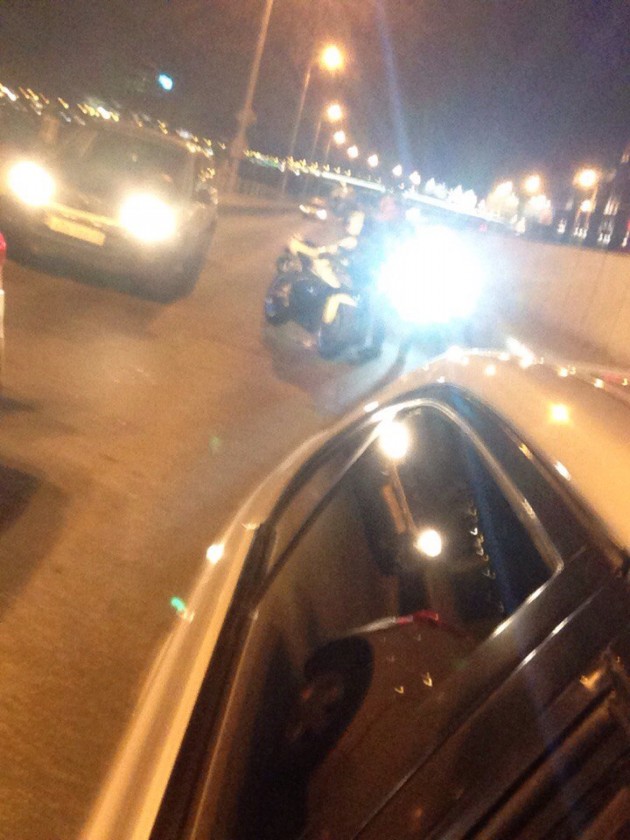 На въезде на Большеохтинский мост, подрезали мото, вследствие этого мото догнал машину. Те, которые подрезали, уехали. Все живы.