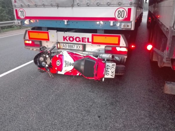 Гатчинская объездная перед Вайя,фура затормозила,пилот с двойкой не успел оттормозиться.