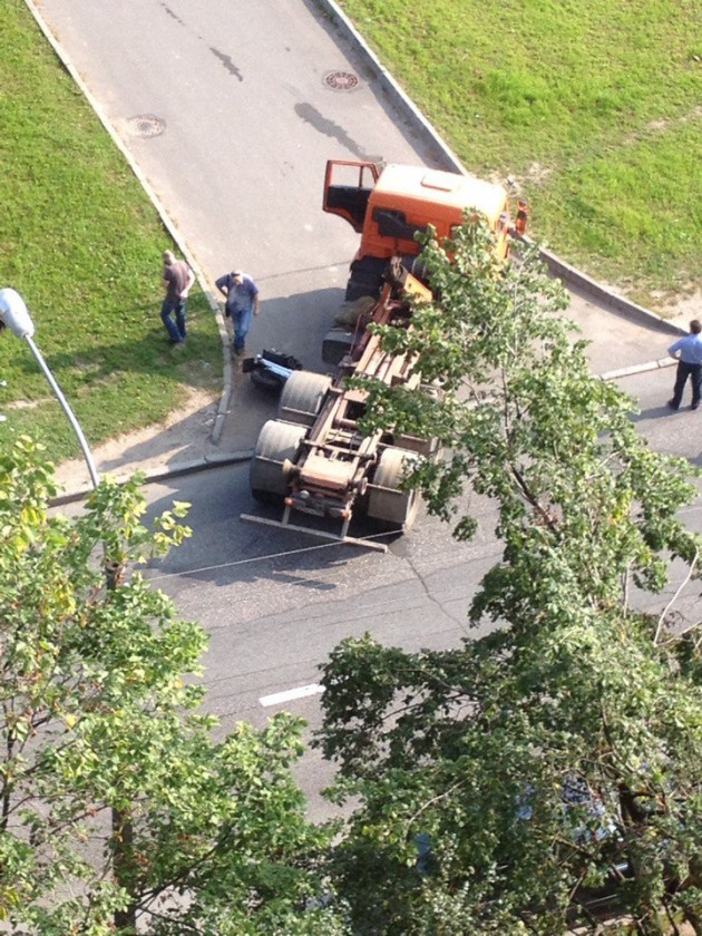 Напротив дома 22 по Камышовой улице, Камаз подмял мотоцикл при левом повороте. Все живы. Мотоцикл Kawasaki vn900.