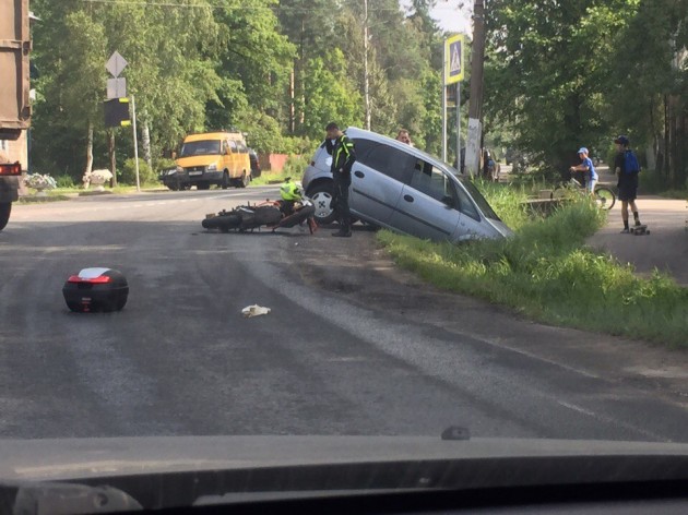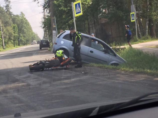 В Посёлке Песочный ДТП с мотоциклом. Все живы, ДПС нет.