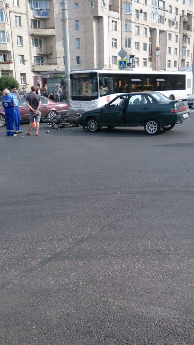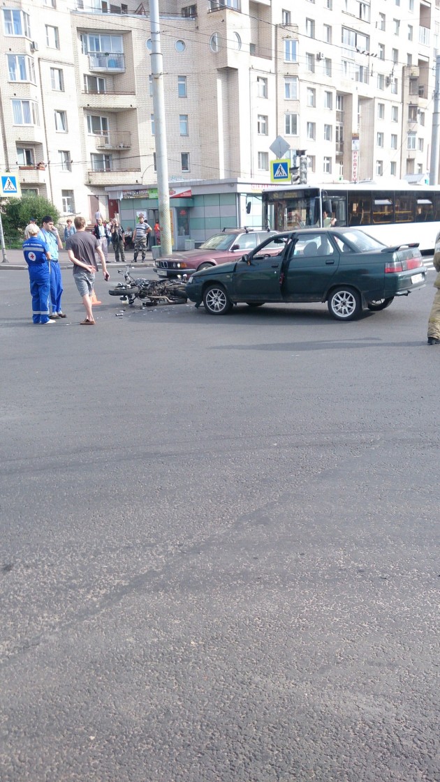 Лада не пропустила мотоцикл, совершая левый поворот, на пересечении Тимуровской со Светлановским, водитель мото жив.