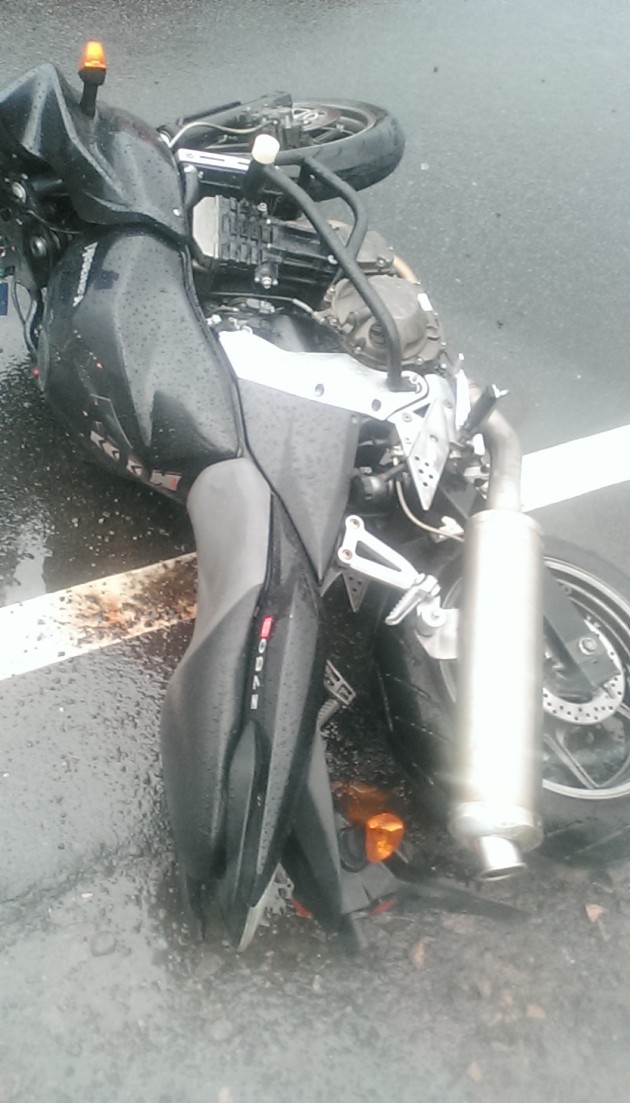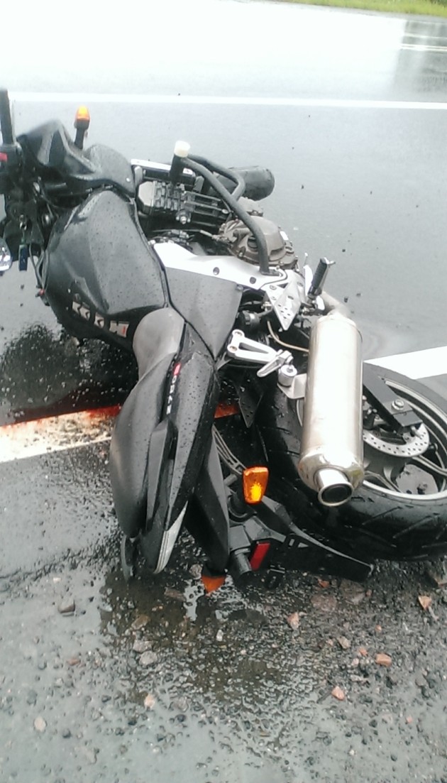 07.08.2016 около 19.00 произошло ДТП с мотоциклом на трассе Кировск-Мга на повороте на Молодцово. По словам людей на месте ДТП, Матиз совершал поворот налево, мотоциклист двигался в попутном направлении на Кавасаки Z750S совершил столкновение. Удар пришелся в задний бампер. Когда я подъехал водителя мотоцикла на носилках грузили в скорую. Мотоцикл без номеров, данные водителя неизвестны, т к документы в наружных карманах не нашли, а дальше врачи не разрешили. По предварительным данным со слов врачей перелом шейного отдела позвоночника, водитель был бессознания. Скорая не реанимация, а обычная буханка, врачи вообще переживали что могут не довезти. Водителя повезли в больницу в Шлиссельбург. Мотоцикл заберут сотрудники полиции в Кировск. Гос номер ам сотрудников полиции оформлявших ДТП Р1020 47