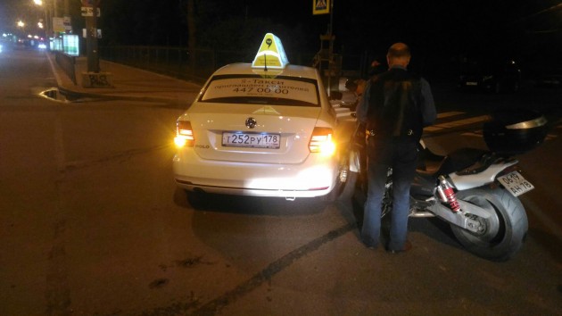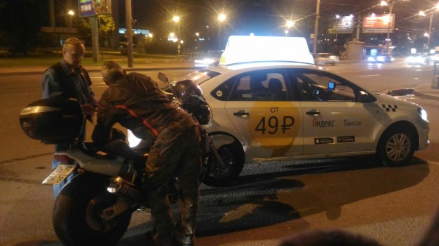 Пр-т Добролюбова и пер-к Талалихина таксист смотрел в навигатор и стал перестраиваться в мотоциклиста. Мотоциклист цел.