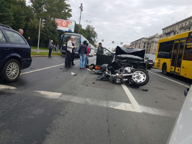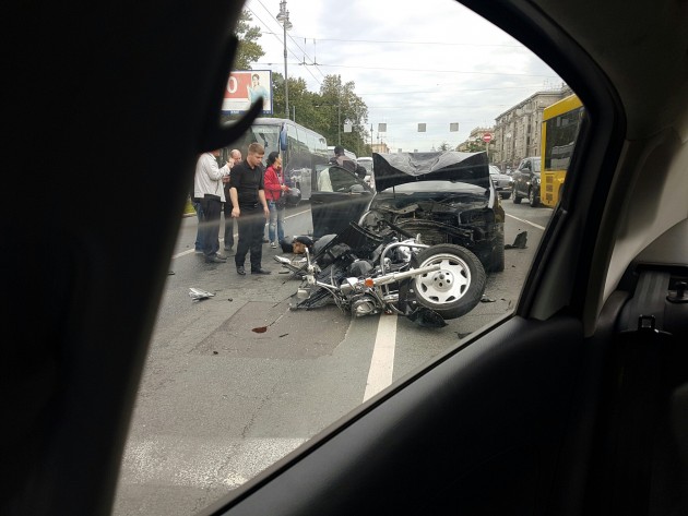 "Байк стоял на красный. В него сзади поло влетело. Пасажирка байка с ушибами позвоничника уехала в дженилидзе"