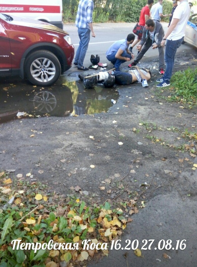 А пилот скутера получил удар его машиной потом отлетел на Бмв