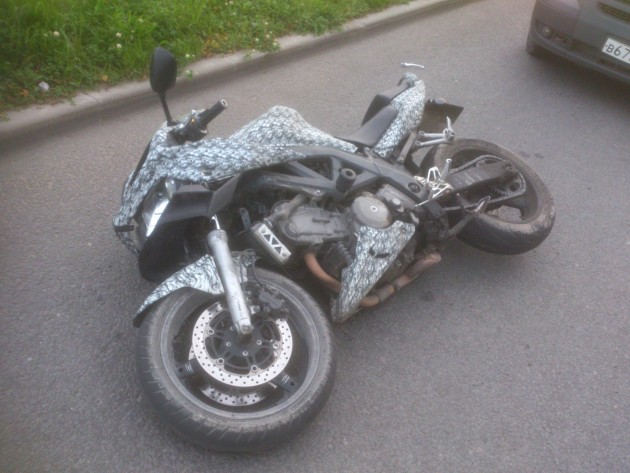 Скорость на которой ехал "байкер" была очень маленькая тк впереди ещё один пешеходный переход с двумя "лежачими полицейскими".