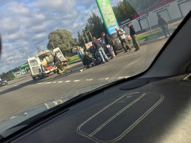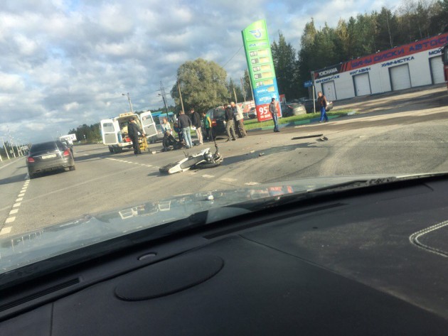 На выезде из Тосно ДТП с байкером. Пилота грузят в скорую.
