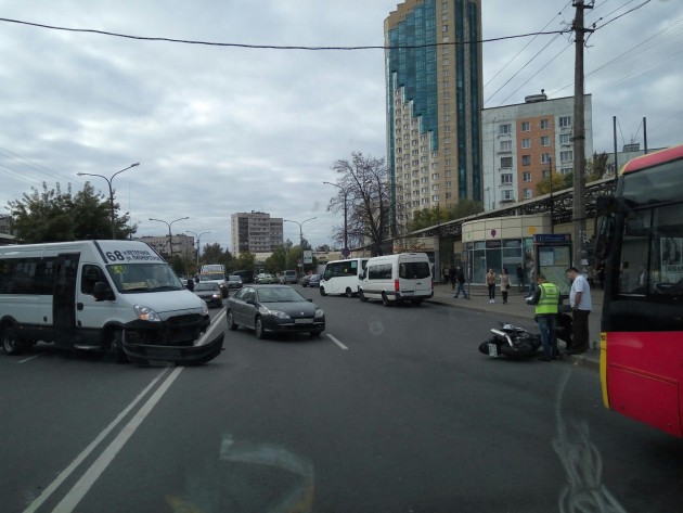 У метро Проспект Ветеранов столкнулись маршрутка и мот, жертв нет. Номер мота 7019 АВ47. --- pp.vk.me/c636823/v636823497/25702/78zEQdM833Y.jpg --- pp.vk.me/c543109/v543109354/11874/TRUWrE0M2M4.jpg
