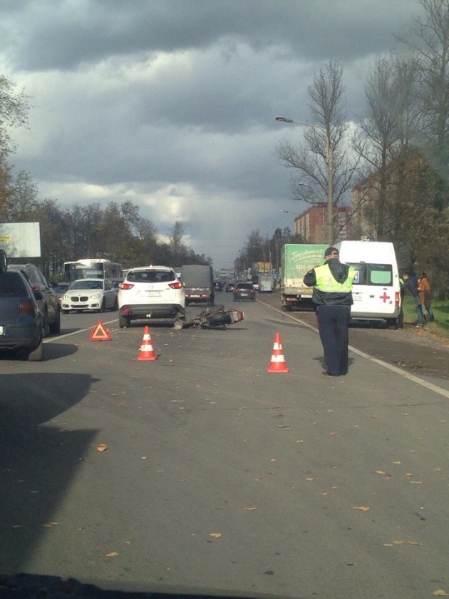 ДТП Красносельское шоссе пересечение с Полевой , мото черного цветаи паркетник, подробностей не знаю , обнаружил в контакте ссылка ниже