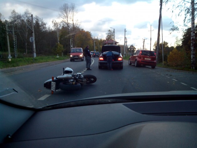 Ломоносов перед переездом со стороны Петергофа, мотобрат вьехал в зад БМВ. Ехал медленно, так что жив, здоров. Остановится не мог опаздывал, да и не к чему было. Ждали ГАИ и оба по телефону разговаривали. Хонда св 400