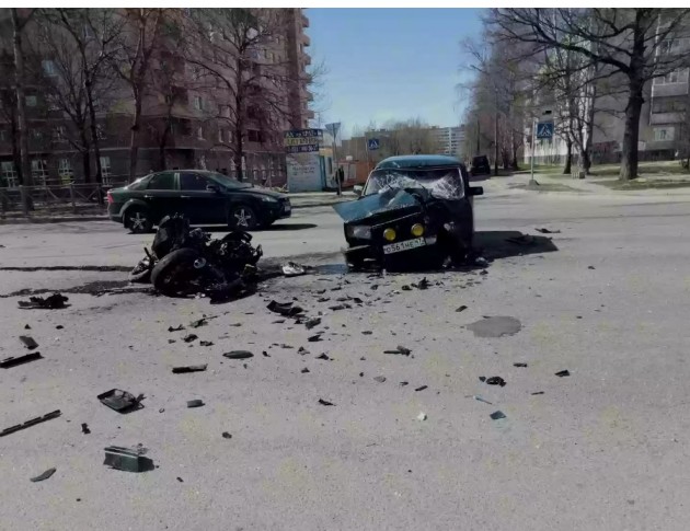 судя по всему водитель жигуля выезжая на проезжую часть не увидел(+забор) байкера