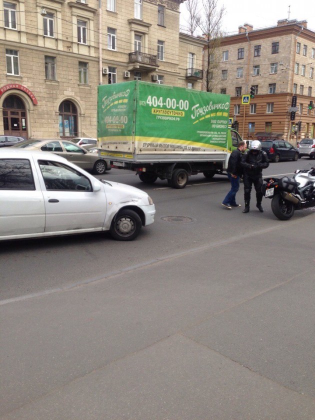 пр. Энгельса 45, Санкт-Петербург. На проспекте Энгельса, Логан при повороте стукнул мотоцикл.