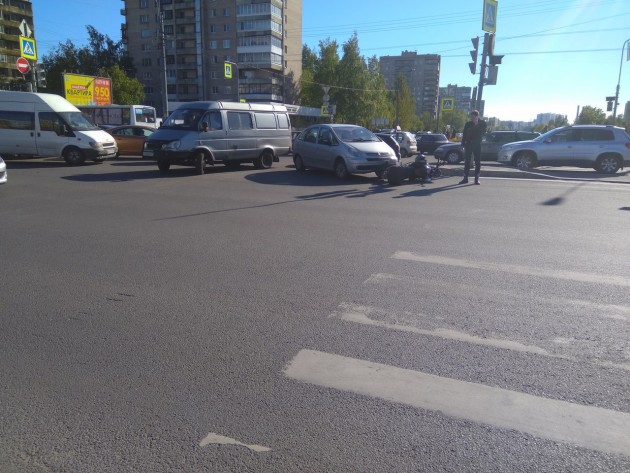 Примерно в 17:52. Мотоцикл и еще участники. ул. Крыленко 39, Санкт-Петербург. Ситроен сбил мото