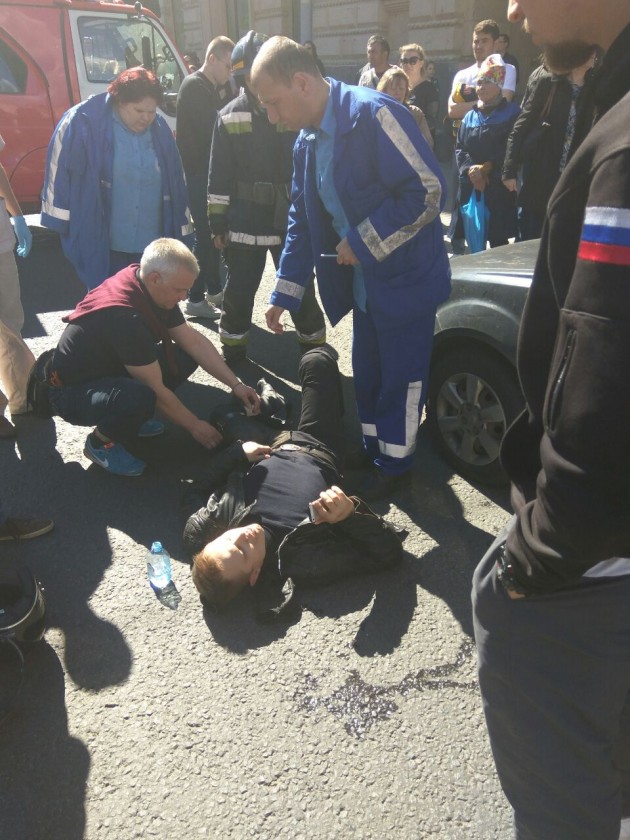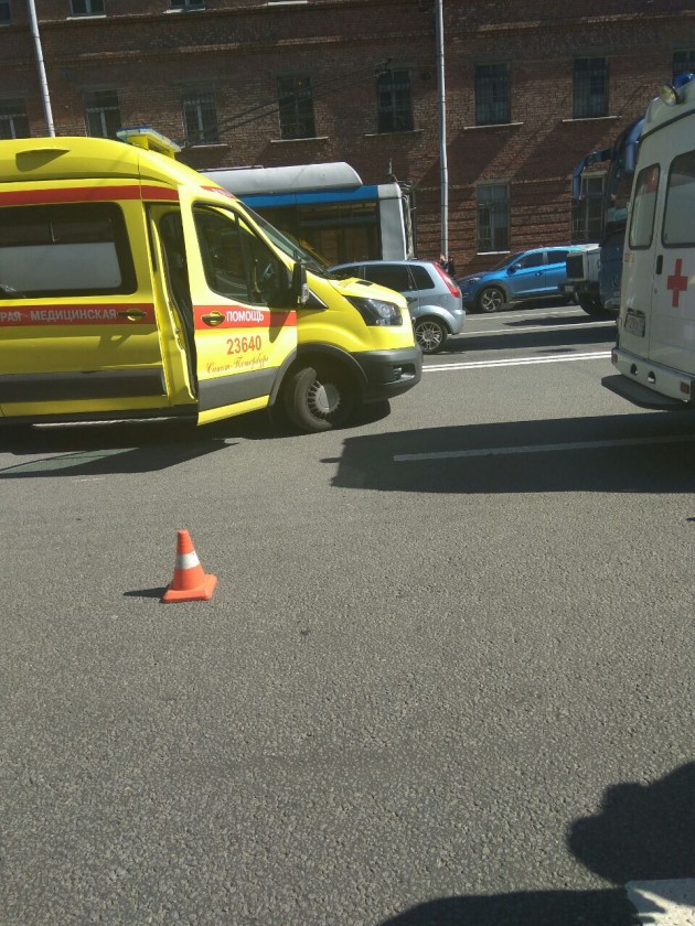 Суворовский пр. 63, Санкт-Петербург. Мотоциклист врезался в Санк-Йонг, мотоциклиста увезла скорая, похоже открытый перелом ноги.