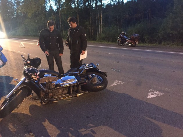 Приморское ш. 530, Зеленогорск. 3-4 км не доезжая до Зелика по верхнему шоссе. Ребята поворачивали налево, в Яхт клуб Териоки ехали кофейку попить. Один мот (голубая Honda Gold Wing) выполнила левый поворот, а парень на Suzuki находился ещё на разделительной полосе. Сзади нёсся Опель и вместо того, чтобы проехать справа от мотоцикла, решил объехать его слева по встречке и сбил мот. Девушка (2-й) номер улетела вперёд и ее увезла скорая. Волитель цел. Водитель Опеля - ....., пишет объяснительную.