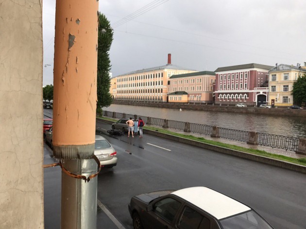 У 187 дома по набережной реки Фонтанки в 18:25 мотоцикл врезался в припаркованный автомобиль.