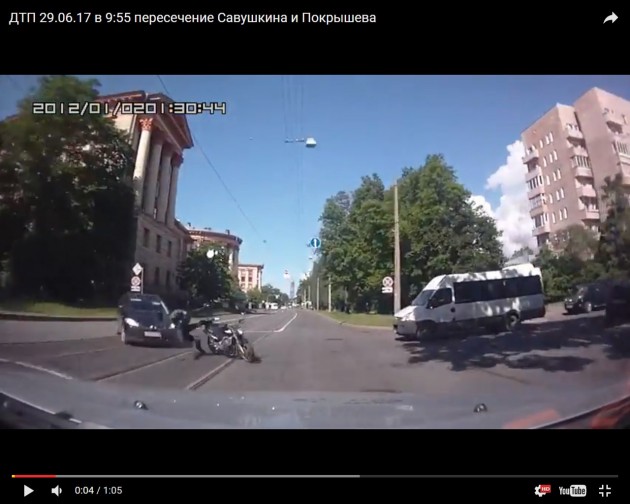 29.06.17 в 9:55 Мотоциклист врезался в автомобиль, поворачивающий с Савушкина и Покрышева.