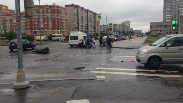 Угол Сизова и Туполевской. Авария с участием мотоцикла. Скорая уже приехала. Девушка лежит на дороге в сознании.