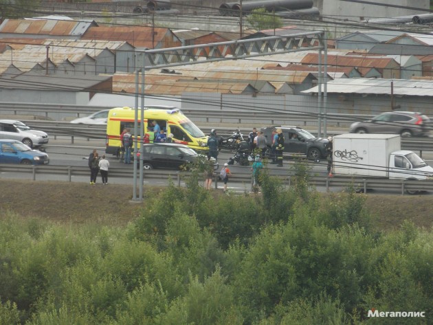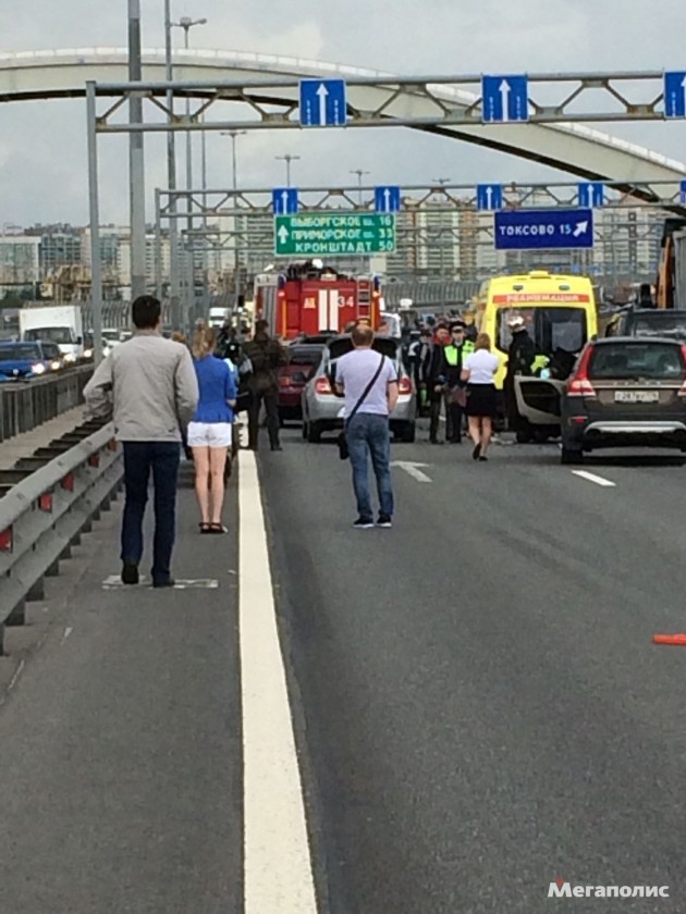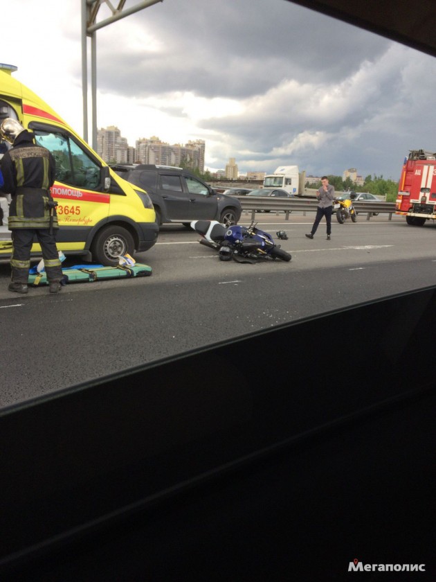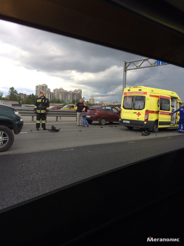 На внешнем кольце КАД авария с мотоциклистами... службы на месте, даже вертолет спасателей прилетел, собирается пробка.